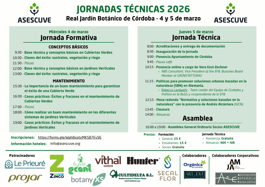 Real Jardín Botánico de Córdoba. 4 y 5 de marzo de 2026. ASESCUVE, la asociación nacional