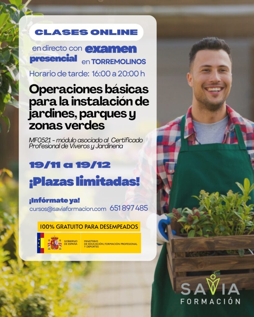Las personas interesadas, pueden contactar directamente SAVIA FORMACIÓN en el Tfno.: +34623188371 o en éste email esther@saviaformacion.com.