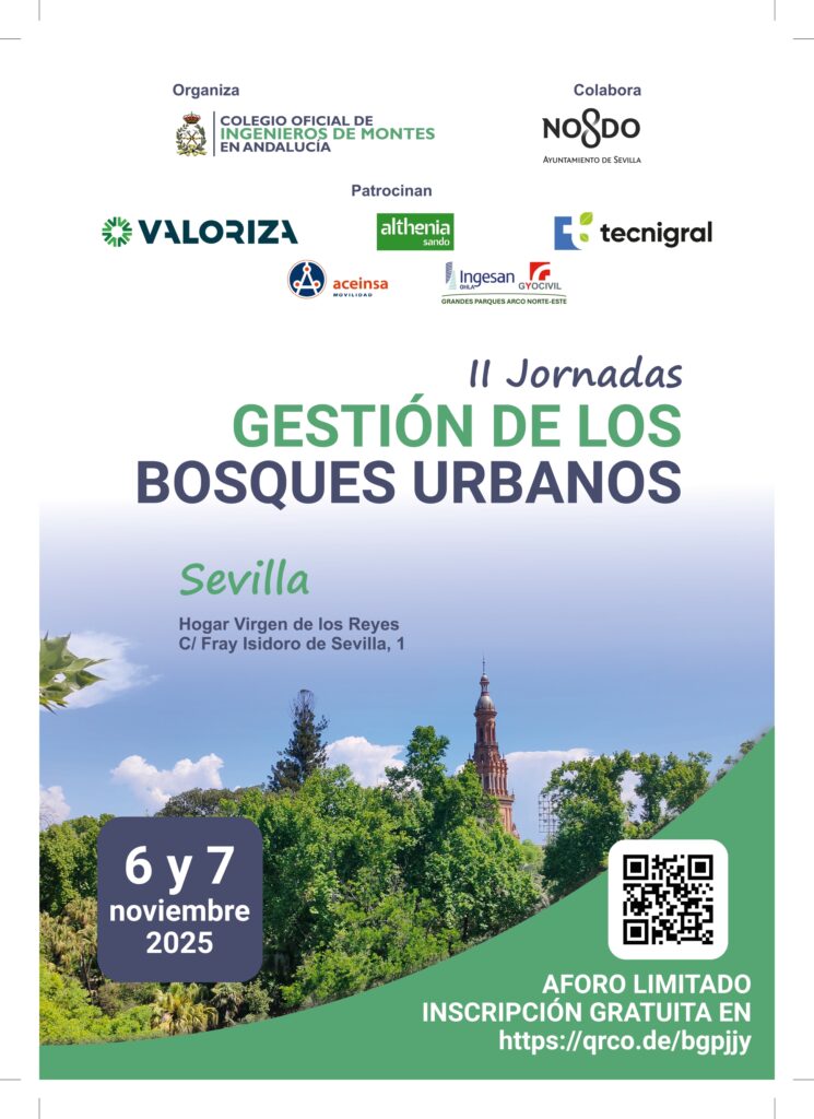 Dado el éxito alcanzado en la I Jornada sobre Gestión de Bosques Urbanos celebrada en Madrid el 5 de Junio de 2025 en la ETS Ingeniería de Montes, Forestal y del Medio Natural, y aprovechando el ofrecimiento realizado por el Ayuntamiento de Sevilla, se consideró de interés seguir compartiendo experiencias en la gestión de un componente básico de las infraestructuras verdes de las ciudades, como son los bosques urbanos. Además de los temas ya tratados, como afrontar retos ecológicos, estructurales y económicos para garantizar la sostenibilidad de los bosques urbanos, el envejecimiento de las plantillas de mantenimiento, las limitaciones presupuestarias, la presión sobre los espacios públicos o los requerimientos de participación ciudadana, así como factores ambientales como el cambio climático, la contaminación, la compactación del suelo o las especies invasoras, se plantean retos como la comunicación con el ciudadano, la gestión de árboles singulares, el uso de nuevas tecnologías, o la gestión del recurso hídrico en relación con los bosques urbanos.