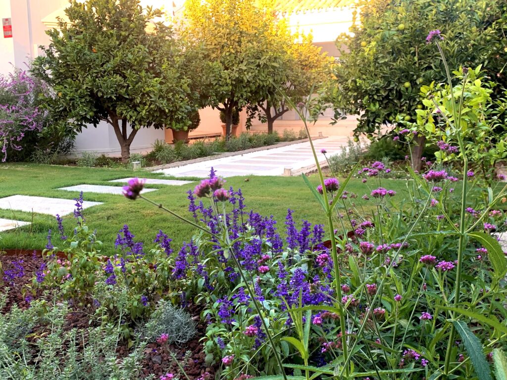 El Jardín de los Sentidos de Marbella, proyectado en 2023 por Rosa Ceño, ha sido incluido por CONAMA y el Observatorio de Soluciones basadas en la Naturaleza en su repositorio como ejemplo de buenas prácticas. En mayo de 2025, en el último Congreso Nacional de Parques y Jardines Públicos (PARJAP 2025), la paisajista presentó con Óscar Gaitán, creador del blog y el proyecto divulgativo Los Árboles Mágicos, un póster en el que se incluyeron los beneficios que dicho parque aporta a la ciudad cuantificados con i-TreeEco, herramienta del Servicio Forestal de EEUU. Los resultados son: 1. Captura de Carbono: 1,4 toneladas de CO₂ capturadas anualmente, con un valor económico estimado de 400€/año en mitigación climática. Nos referimos al beneficio monetario que representa evitar que ese CO₂ llegue a la atmósfera. Cuanto mayor sea la copa de los árboles, mayor será la absorción de CO₂. 2. Reducción de Contaminantes: Eliminación de 8,1 kg de ozono (O₃), 5,3 kg de partículas finas (PM2.5) y 3,2 kg de dióxido de nitrógeno (NO₂), equivalente a 1.100€/año en beneficios para la salud pública. Esto representa un ahorro en costes sanitarios y evita la pérdida de productividad y mortalidad prematuras gracias a la acción depuradora de la vegetación. 3. Mitigación Térmica: Disminución de temperatura de hasta 2,5°C en zonas sombreadas y reducción de demanda energética en edificaciones cercanas (ahorro estimado: 2.200 kWh/año). La vegetación modifica el microclima urbano y logra un menor consumo de energía para climatización, una reducción de la mortalidad por olas de calor. 4. Regulación Hídrica. Infiltración de 180.000 litros de agua pluvial anualmente, que minimizan escorrentías superficiales y riesgos de inundación. Es la capacidad de un jardín para captar, retener y filtrar el agua de lluvia, en lugar de que esta se pierda como escorrentía superficial. Se evitan así inundaciones urbanas y colapsos de alcantarillado y se reduce el agua de riego.