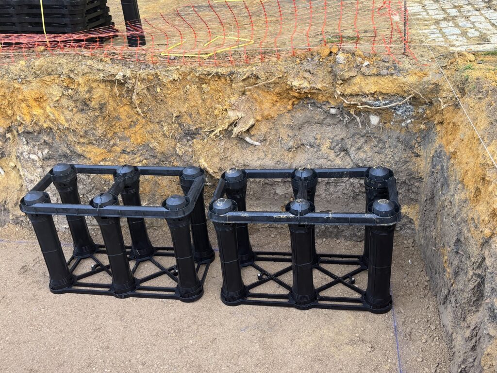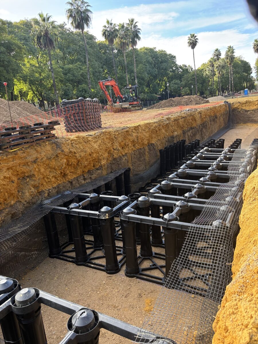 El elemento clave del proyecto es la implementación del sistema Silva Cell®, un pavimento suspendido, de estructura modular diseñado para soportar cargas superficiales mientras ofrece un volumen subterráneo de suelo óptimo para el desarrollo radicular.