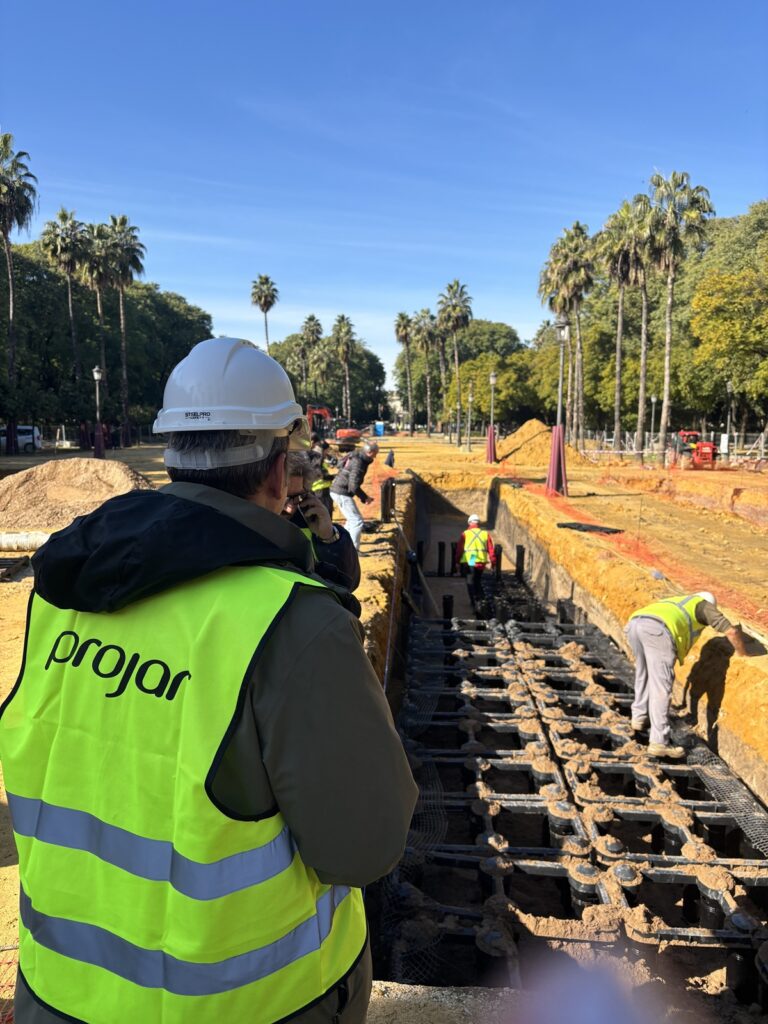 El Ayuntamiento de Sevilla, a través de la Delegación de Arbolado, Parques y Jardines, avanza en la cuarta fase de la renovación de los jardines del Prado de San Sebastián con la aplicación del sistema Silva Cell® de PROJAR, destinado a optimizar las condiciones subterráneas de plantación y favorecer significativamente el desarrollo del arbolado.
