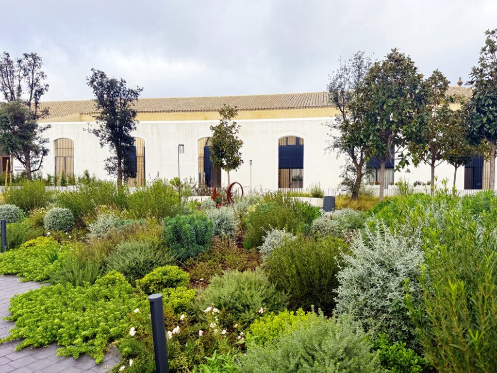 - Una propuesta paisajística con varios criterios superpuestas de excelente resolución, destacando la intervisibilidad de los elementos y valores arquitectónicos preservados, la alta diversidad de especies utilizadas creando un complejo, pero unificado, mosaico textural y cromático, todas ellas con bajos requerimientos hídricos y la solución técnica para las plantaciones sobre cubierta estanca de los aparcamientos.